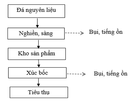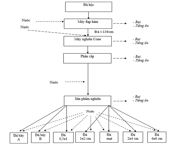 Hình 2: Sơ đồ hệ thống chế biến đá kèm dòng thải