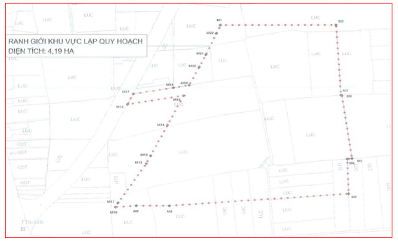 Tổng diện tích khu đất: 41.913,45 m2gồm đất ở; đất trường học; đất hạ tầng kỹ thuật; đất giao thông; đất cây xanh.