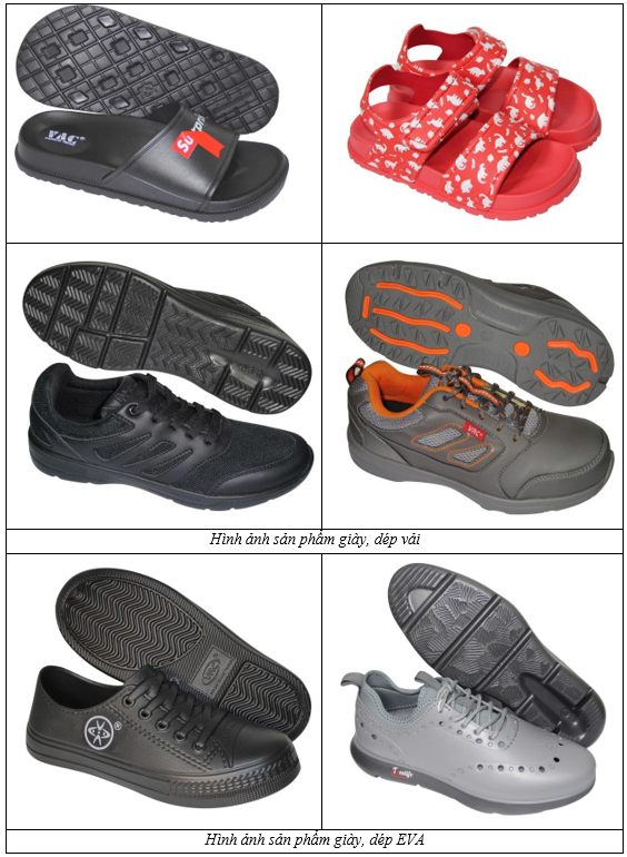“Nhà máy sản xuất giày, dép công suất 4.000.000 đôi/năm; Đế giày, dép công suất 2.184.000 đôi/năm; Simili (giả da) công suất 5.000.000 m/năm”; khuôn công suất 140 bộ/năm”